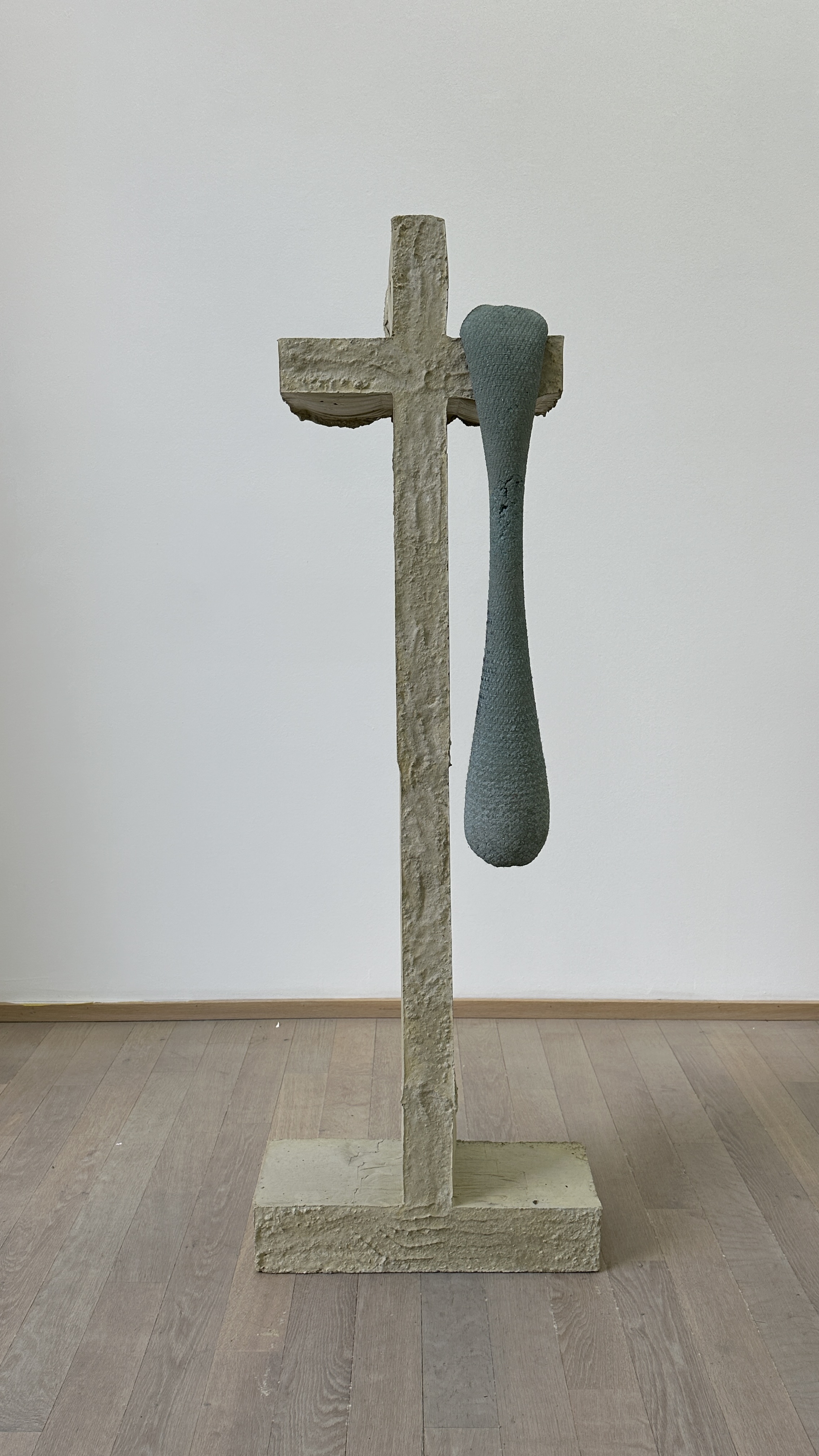 The interplay of dull yet profound colours is another contradiction in Coulon’s work. The pastel shades suggest a kind of fading-out, a sign of wear and tear. Yet the sculptures are dyed in the mass, promising to withstand the wear of time, to remain unaltered despite the ordeals, despite the weather, despite the critics.